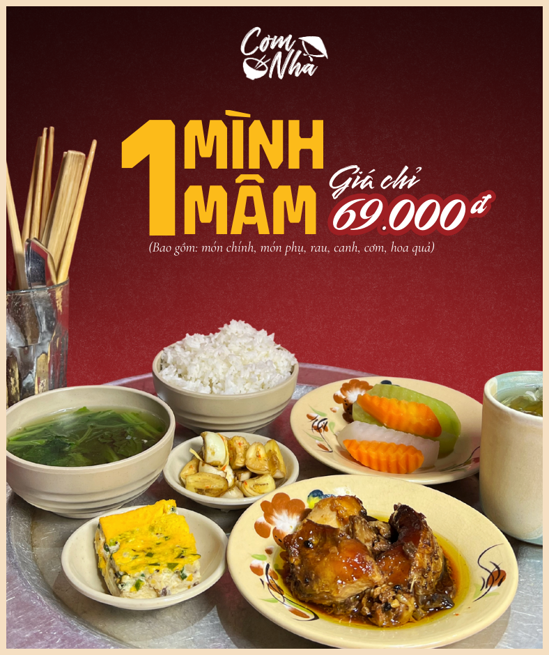 “Tròn vị trọn tình” là cách Cơm Nhà nói về một bữa ăn đúng nghĩa. “Tròn vị” là món ăn nấu vừa miệng, đủ những vị mặn, ngọt, chua, cay. “Trọn tình” là cái tâm của người nấu và sự quan tâm dành cho người dùng bữa.